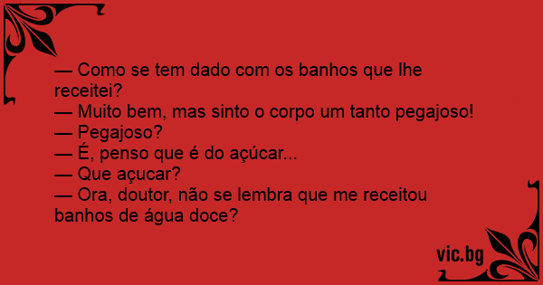— Ora, doutor, não se lembra que me receitou banhos de água doce?