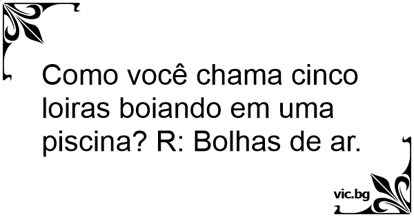 Como você chama cinco loiras boiando em uma piscina? R: Bolhas de ar.