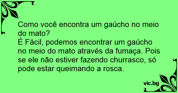 É Fácil, podemos encontrar um gaúcho no meio do mato através da fumaça. Pois se ele não estiver fazendo churrasco, só pode estar queimando a rosca.
