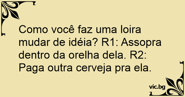 Como você faz uma loira mudar de idéia? R1: Assopra dentro da orelha dela. R2: Paga outra cerveja pra ela.