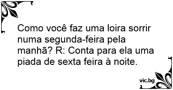 Como você faz uma loira sorrir numa segunda-feira pela manhã? R: Conta para ela uma piada de sexta feira à noite.
