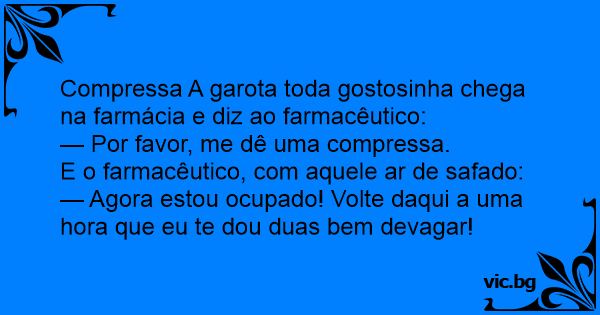 Compressa A garota toda gostosinha chega na farmácia e diz ao farmacêutico: