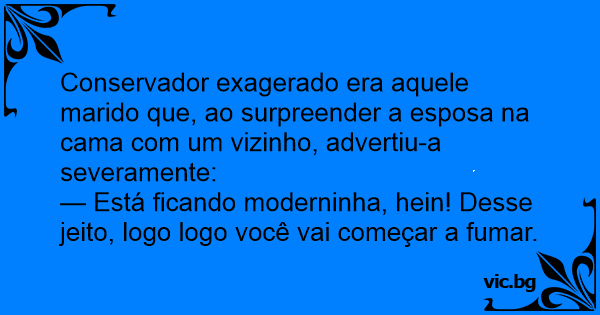 Conservador exagerado era aquele marido que, ao surpreender a esposa na cama com um vizinho, advertiu-a severamente:
