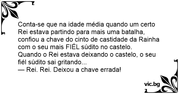 Conta-se que na idade média quando um certo Rei estava partindo para mais uma batalha, confiou a chave do cinto de castidade da Rainha com o seu mais FIÉL súdito no castelo.