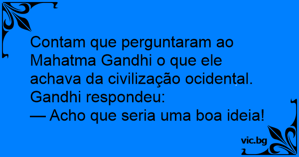 Contam que perguntaram ao Mahatma Gandhi o que ele achava da civilização ocidental. Gandhi respondeu:
