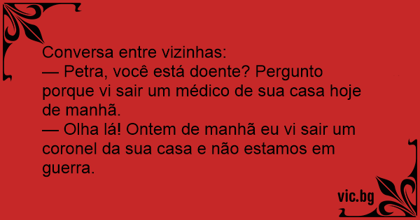 — Olha lá! Ontem de manhã eu vi sair um coronel da sua casa e não estamos em guerra.