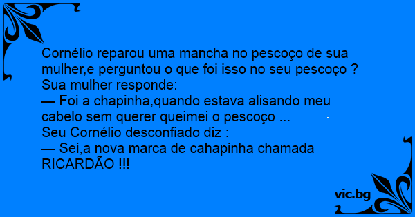 Cornélio reparou uma mancha no pescoço de sua mulher,e perguntou o que foi isso no seu pescoço ?