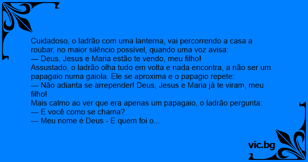 Mais calmo ao ver que era apenas um papagaio, o ladrão pergunta: