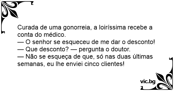 Curada de uma gonorreia, a loiríssima recebe a conta do médico.