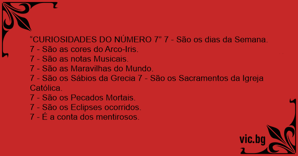 “CURIOSIDADES DO NÚMERO 7” 7 - São os dias da Semana.