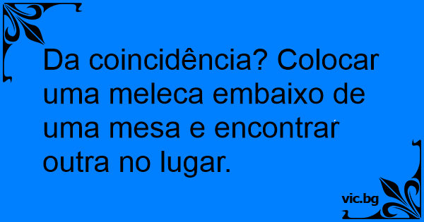 Da coincidência? Colocar uma meleca embaixo de uma mesa e encontrar outra no lugar.