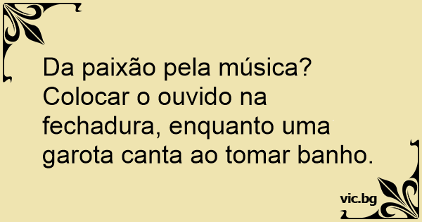 Da paixão pela música? Colocar o ouvido na fechadura, enquanto uma garota canta ao tomar banho.