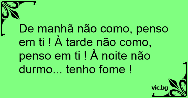 De manhã não como, penso em ti ! À tarde não como, penso em ti ! À noite não durmo... tenho fome !