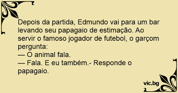 Depois da partida, Edmundo vai para um bar levando seu papagaio de estimação. Ao servir o famoso jogador de futebol, o garçom pergunta: