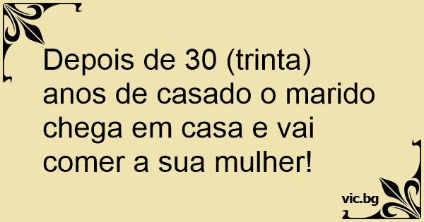 Depois de 30 (trinta) anos de casado o marido chega em casa e vai comer a sua mulher!