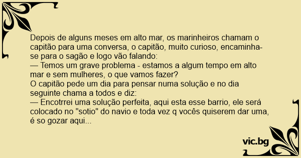 — Temos um grave problema - estamos a algum tempo em alto mar e sem mulheres, o que vamos fazer?