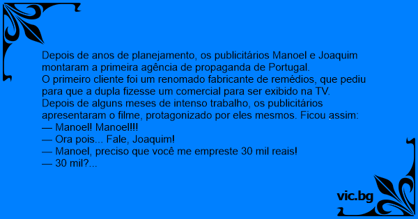 Depois de anos de planejamento, os publicitários Manoel e Joaquim montaram a primeira agência de propaganda de Portugal.