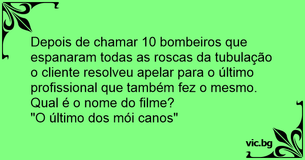 Depois de chamar 10 bombeiros que espanaram todas as roscas da tubulação o cliente resolveu apelar para o último profissional que também fez o mesmo.