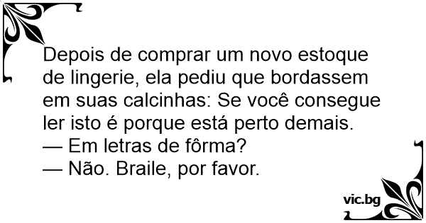 Depois de comprar um novo estoque de lingerie, ela pediu que bordassem em suas calcinhas: Se você consegue ler isto é porque está perto demais.