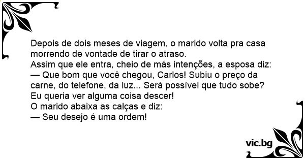 O marido abaixa as calças e diz: