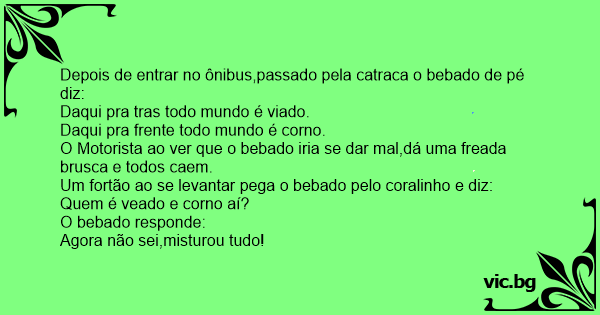 Depois de entrar no ônibus,passado pela catraca o bebado de pé diz:
