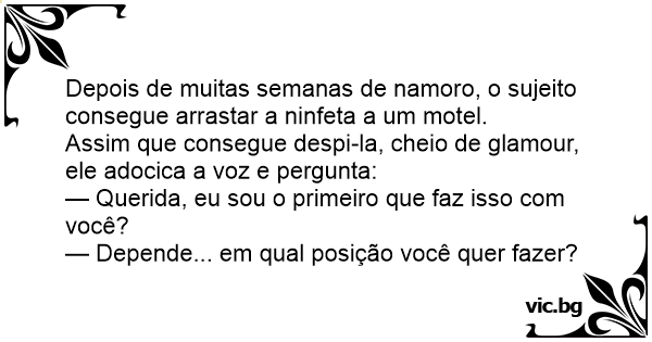 Depois de muitas semanas de namoro, o sujeito consegue arrastar a ninfeta a um motel.