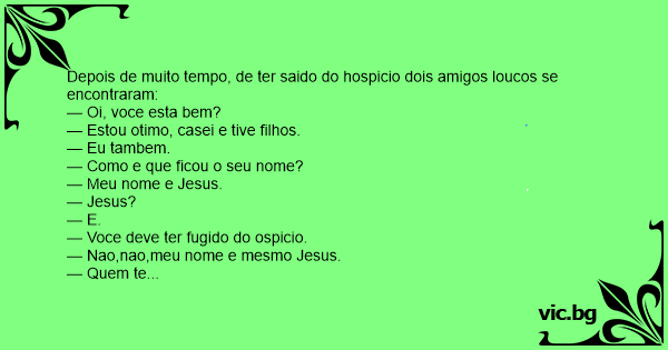 Depois de muito tempo, de ter saido do hospicio dois amigos loucos se encontraram: