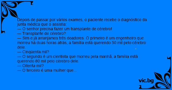 — O senhor precisa fazer um transplante de cérebro!