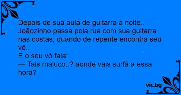Joãozinho passa pela rua com sua guitarra nas costas, quando de repente encontra seu vô..