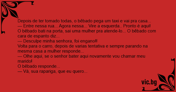 Depois de ter tomado todas, o bêbado pega um taxi e vai pra casa...