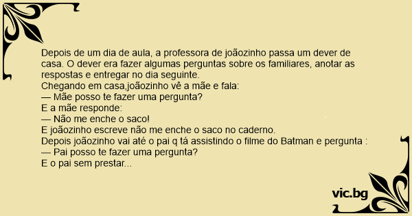 — Batman, Batman! responde joãozinho Daí a professora fala?