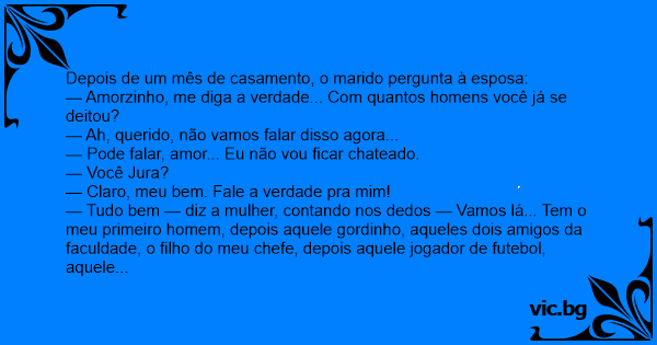 — Amorzinho, me diga a verdade... Com quantos homens você já se deitou?