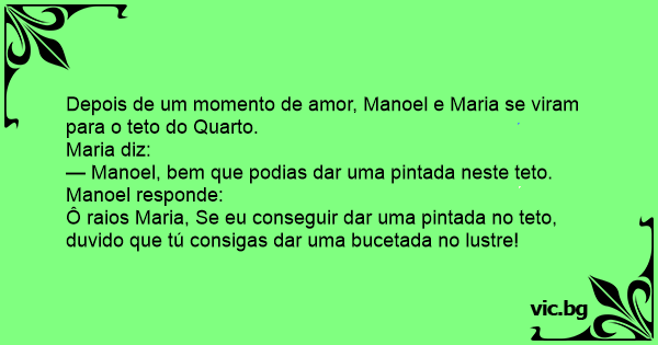 — Manoel, bem que podias dar uma pintada neste teto.