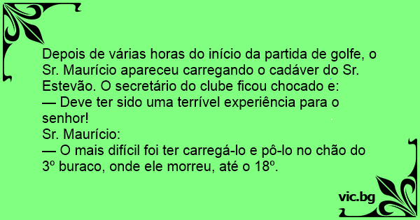 Depois de várias horas do início da partida de golfe, o Sr. Maurício apareceu carregando o cadáver do Sr. Estevão. O secretário do clube ficou chocado e: