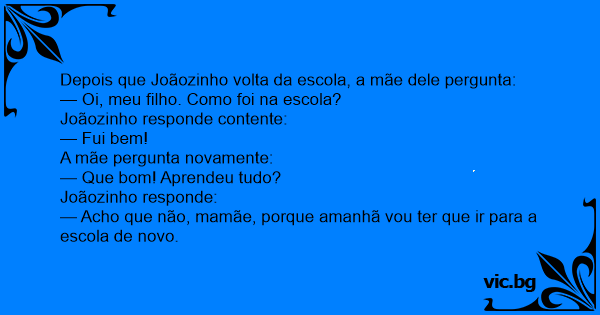 Depois que Joãozinho volta da escola, a mãe dele pergunta:
