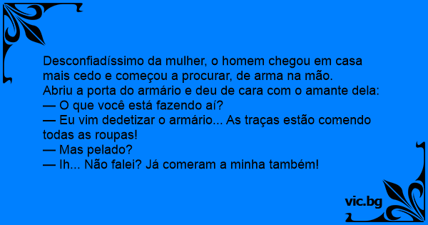— Eu vim dedetizar o armário... As traças estão comendo todas as roupas!