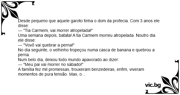 Desde pequeno que aquele garoto tinha o dom da profecia. Com 3 anos ele disse: