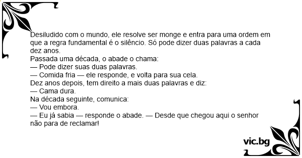 — Eu já sabia — responde o abade. — Desde que chegou aqui o senhor não para de reclamar!