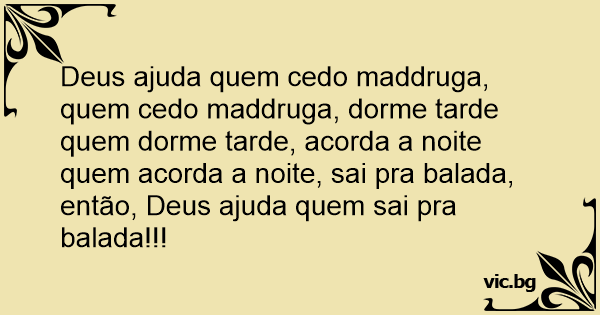 Deus ajuda quem cedo maddruga, quem cedo maddruga, dorme tarde quem dorme tarde, acorda a noite quem acorda a noite, sai pra balada, então, Deus ajuda quem sai pra balada!!!