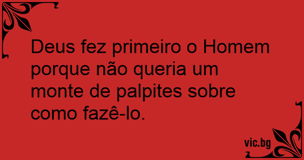 Deus fez primeiro o Homem porque não queria um monte de palpites sobre como fazê-lo.