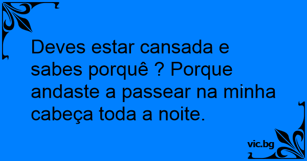 Deves estar cansada e sabes porquê ? Porque andaste a passear na minha cabeça toda a noite.