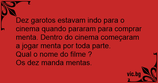 Dez garotos estavam indo para o cinema quando pararam para comprar menta. Dentro do cinema começaram a jogar menta por toda parte.