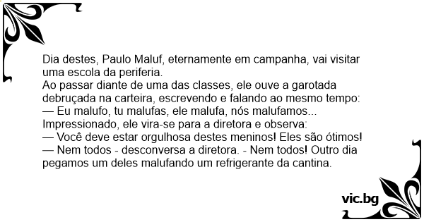— Eu malufo, tu malufas, ele malufa, nós malufamos...
