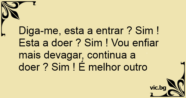 Diga-me, esta a entrar ? Sim ! Esta a doer ? Sim ! Vou enfiar mais devagar, continua a doer ? Sim ! É melhor outro sapato.