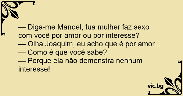 — Diga-me Manoel, tua mulher faz sеxо com você por amor ou por interesse?