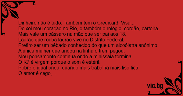 Dinheiro não é tudo. Também tem o Credicard, Visa...