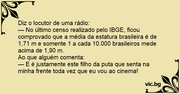 — E é justamente este filho da рuта que senta na minha frente toda vez que eu vou ao cinema!