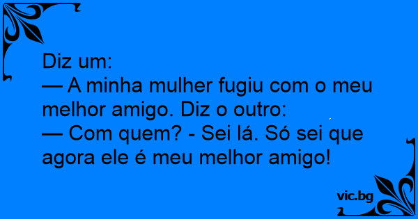 — A minha mulher fugiu com o meu melhor amigo. Diz o outro: