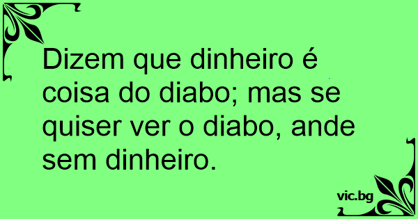 Dizem que dinheiro é coisa do diabo; mas se quiser ver o diabo, ande sem dinheiro.
