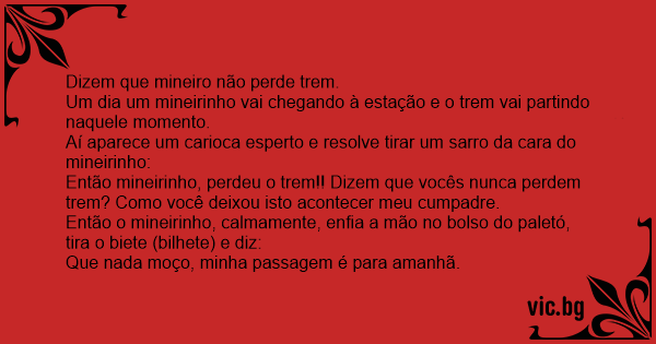 Então o mineirinho, calmamente, enfia a mão no bolso do paletó, tira o biete (bilhete) e diz: